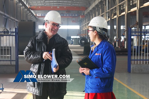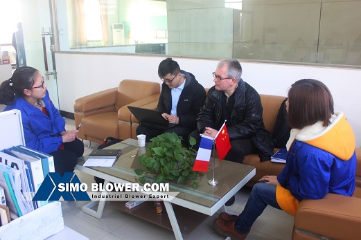 A customer from French to purchase a number of European industry standard fan, on March 1st came to SIMO BLOWER for a visit. This trip Scheduled one day to visit, but the customer discussed with our technical engineers about technical problems for 9 hours. Therefore, the client re-booked flights to the next day.