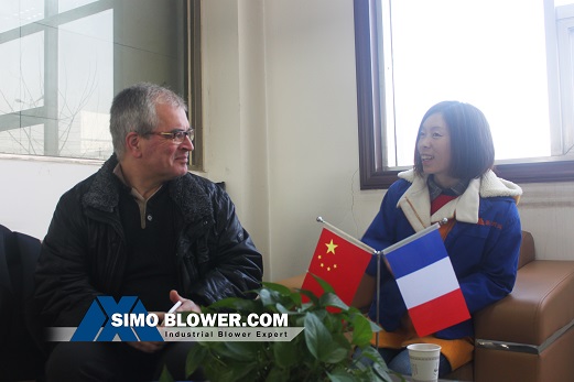 A customer from French to purchase a number of European industry standard fan, on March 1st came to SIMO BLOWER for a visit. This trip Scheduled one day to visit, but the customer discussed with our technical engineers about technical problems for 9 hours. Therefore, the client re-booked flights to the next day.