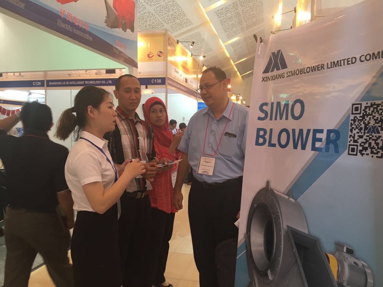 SIMO BLOWER’s Exhibition Booth Number is C206A in C2 Hall. Today we have received the customers of more than 30 companies, including contractors of electric energy systems, equipment suppliers, and import and export traders. Customers are very interested in the industry performance and product videos that SIMO BLOWER shows. Customers have in-depth conversations with our engineers and sale managers, and they hope we can participate in their recent project.